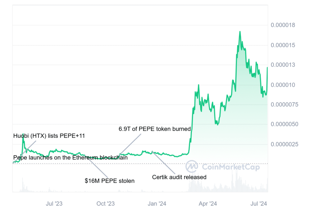 — The Roundtable – Web3/NFT/Crypto (@0xRoundTable) July 16, 2024Beneficjentem tego rajdu są nie tylko główne kryptowaluty takie jak bitcoin czy Ethereum, ale również rynek memecoinów z tokenami związanymi z Trumpem i $PEPE (z 24,10% wzrostem) na czele. Pepe ponownie znajduje się w centrum uwagi dzięki Nascent, znanemu VC, który podobno kupił 141 miliardów tokenów $PEPE z MKR o wartości około 3,41 miliona dolarów.