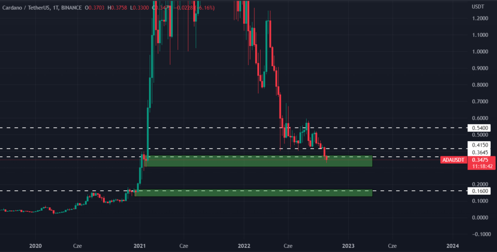 Patrząc na wykres Cardano, ciężko być blisko powyższego optymizmu. w tej chwili broniona jest tygodniowa strefa popytowa, która została utworzona na początku 2021 roku i możliwe, iż w najbliższej przyszłości cena będzie się utrzymywać na tym pułapie cenowym.