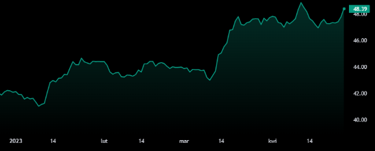Źródło: StooqNajważniejszym czynnikiem prowzrostowym okazał się jednak być fatalny stan systemu bankowego. First Republic Bank odnotował 102 miliardy dolarów odpływu depozytów w pierwszym kwartale tego roku, o 72 miliardy dolarów więcej niż oczekiwano. Według szwajcarskiej grupy Swissquote, nieszczęścia pożyczkodawcy ożywiły szersze obawy na temat stanu systemu bankowego w USA, a inwestorzy instytucjonalni coraz częściej spoglądają w stronę Bitcoina jako alternatywy i bezpiecznej przystani.