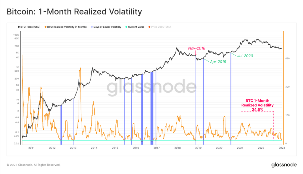 Początek roku rozpoczął się na rynku kryptowalut zupłenie 'nijako’ ale w ostatnich dniach staliśmy się świadkami nieznacznej, pozytywnej zmiany. Historycznie długie okresy niskiej zmienności Bitcoina zapowiadały zbliżającą się wielkimi krokami rzeź lub szalony rajd byków, ze zdecydowaną przewagą pozytywnych katalizatorów cenowych. Mając jednak na uwadze zbliżający się sezon wyników na Wall Street oraz lutowe posiedzenie Fed co do którego rynek jest bardzo optymistyczny z blisko 5 krotną przewagą byków, spróbujemy pochylić się nad danymi on-chain ponieważ istotnie znajdujemy się prawdopodobnie w przededniu czegoś wielkiego. Czy Bitcoin zagra na nosie kupującym? Czego tym razem możemy się spodziewać? Poniżej zaprezentujemy kilka wykresów on-chain przedstawionych przez Glassnode.