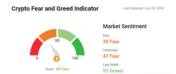 Kompas wskazujący sentyment lęku i chciwości w sektorze krypto, źródło: CoinStatsCena Bitcoina słabnie, kurs Ethereum radzi sobie nieźle