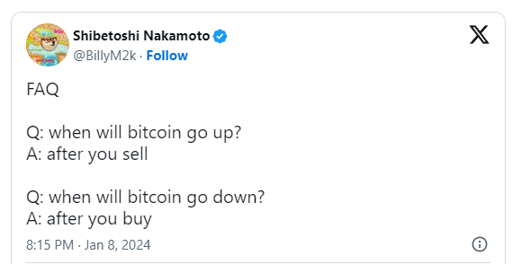 — il Capo Of Crypto (@CryptoCapo_) January 9, 2024Shibetoshi Nakamoto nie jest pod wrażeniem