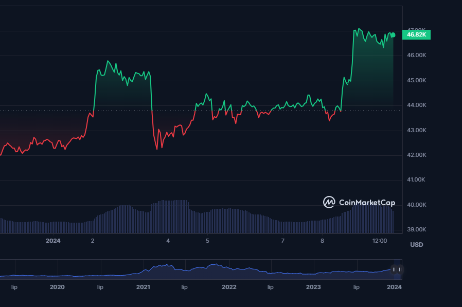 Bitcoin, najstarsza kryptowaluta, zanotowała wczoraj wieczorem nowe lokalne maksimum — 47 201 USD — najwyższy kurs od kwietnia ubiegłego roku. Taki dynamiczny ruch ceny wywołał wiele dyskusji wśród uczestników i obserwatorów rynku.