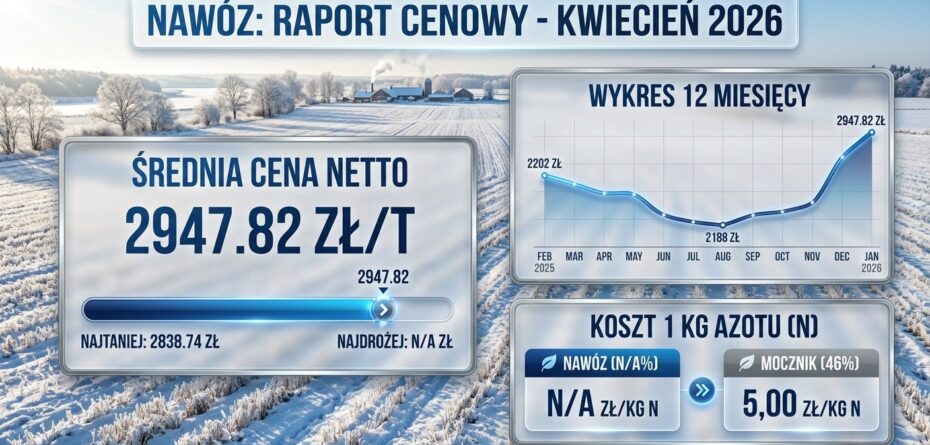 Cena mocznika kwiecień 2026 pokazuje wyraźny wzrost stawek w całym kraju. Średnia cena netto przekroczyła 2947 zł/t, a różnice między regionami sięgają ponad 700 zł. Rolnicy analizują, czy to dobry moment na zakup nawozu azotowego przed kolejnymi zabiegami. Sprawdzamy najnowsze dane z rynku, opinie farmerów oraz realną opłacalność zakupu.