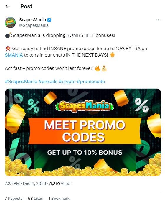 Wykorzystaj możliwości wysokiego ROI dzięki ScapesMania – odblokuj +500% sukcesu z kodem IUO336! Zrób jeszcze większy plusk, kupując więcej tokenów ScapesMania z tym samym budżetem, dzięki pokaźnemu bonusowi w wysokości 10%. Oferta jest ważna tylko przez kilka dni od publikacji artykułu, więc pospiesz się! Wpisz IUO336 w specjalnym polu podczas zakupu tokenów w strefie członkowskiej serwisu.