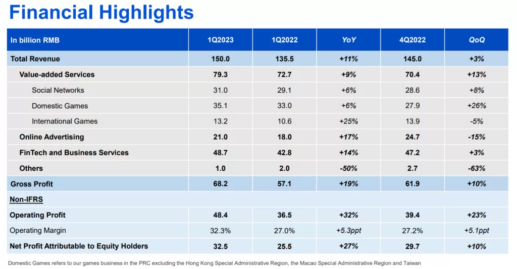 Źródlo: TencnetTencent od lat rozwija się na rynku gier. Dla spółki konieczna jest ekspansja zagraniczna, ponieważ chiński rząd mocno reguluje krajowy rynek gier. Dotyczy to szczególnie młodych osób. Wprowadzono wymóg, aby ograniczyć czas spędzany na grach przez osoby poniżej 18 roku. W efekcie między I Q 2020 a I Q 2023 średni czas, jaki spędzał użytkownik na grach Tencentu spadł o 96%. To utrudniło wzrost przychodów na rynku krajowym przez Tencent. W efekcie ekspansja na inne rynki jest koniecznością dla Tencentu.