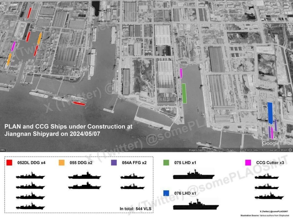 Chińska stocznia w Szanghaju buduje w tej chwili 13 okrętów wojennych. Tymczasem 19 okrętów w USA opuści służbę w tym roku, a zwodowanie nowych jednostek zajmuje lata. Źródło: X, PLAOSINTUS Navy – nie może budować statków?