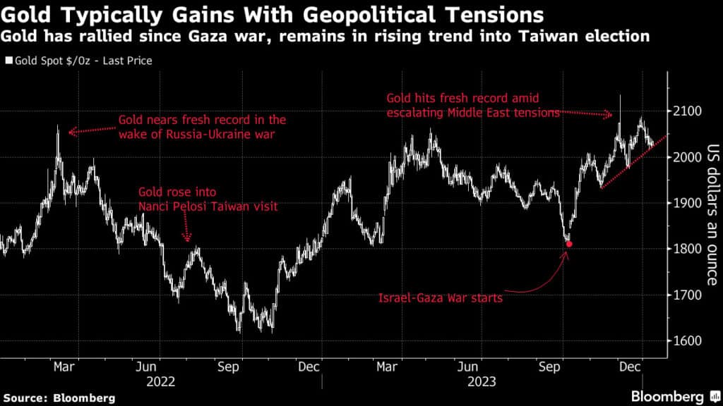 Złoto, historycznie wrażliwe i zyskujące w wyniku wyższych, geopolitycznych napięć jest obok ropy aktywem uważnie obserwowanym przez globalne rynki finansowe. Stanowi też popularny 'hedge’ przez co zainteresowanie nim rośnie w niespokojnych czasach. Źródło: BloombergChiny gonią technologię USA
