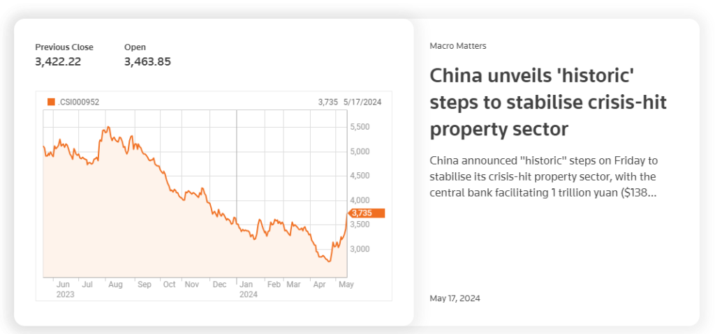 Pęknięcia na chińskim rynku nieruchomości zaczęły się ujawniać w 2021 roku, kiedy to komunistyczny rząd wprowadził środki mające na celu ograniczenie nadmiernego zadłużania się deweloperów. Celem było „zapobieżenie tworzeniu się bańki spekulacyjnej„, ale jednocześnie doprowadziło do kryzysu płynności u wielu firm deweloperskich. Najbardziej charakterystycznym przedstawicielem tegoż był krajowy gigant Evergrande, który ostatecznie w styczniu 2024 roku na mocy decyzji sądu w Hong Kongu ogłosił formalne bankructwo. Pisaliśmy o tym niejednokrotnie, jako iż problemy tej spółki wywoływały potężne tąpnięcia na azjatyckich parkietach i docierały także do Europy i Stanów Zjednoczonych.