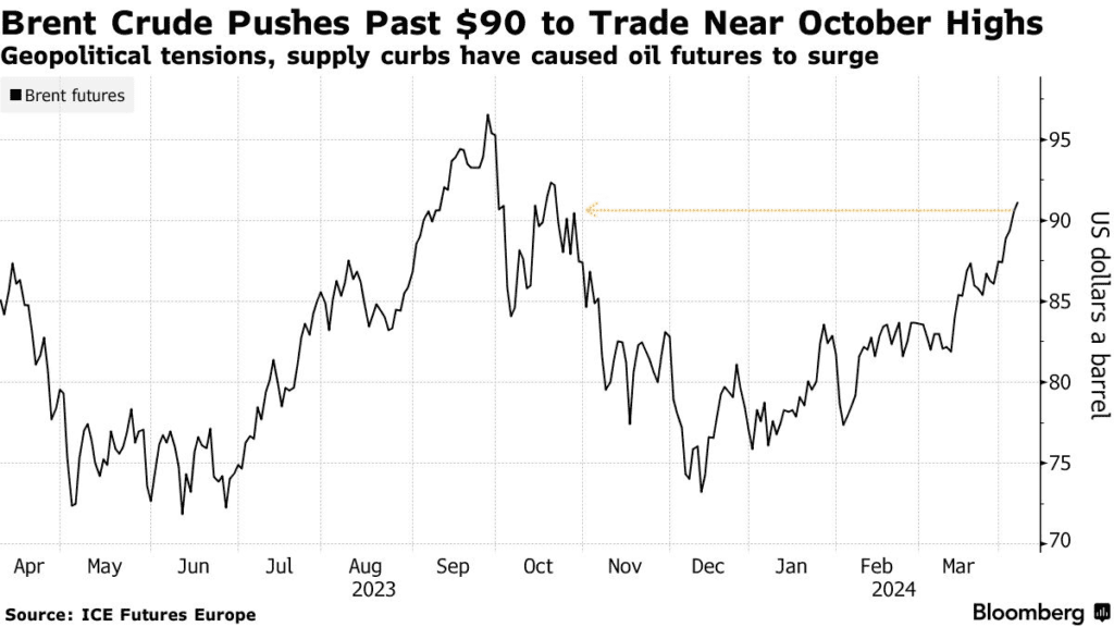 We wspomniany poniedziałek 1 kwietnia, Izrael przeprowadził atak rakietowy na stolicę Syrii, Damaszek. W wyniku ataku zniszczony został budynek irańskiego konsulatu. Jedną z ofiar ataku był wysoki rangą dowódca Korpusu Strażników Rewolucji Islamskiej, Mohammad Reza Zahedi. Po incydencie Siły Obronne Izraela (IDF) ogłosiły powołanie rezerwistów w celu wzmocnienia systemu obrony powietrznej. To nie pierwszy raz, kiedy IDF uderzył w Syrię. W grudniu izraelska armia wyeliminowała starszego doradcę irańskiej Gwardii Rewolucyjnej, Sayyeda Razi Mousaviego. Przysłowiowa miarka się przebrała? Tak sugerują ceny kontraktów na ropę, które od 1 stycznia wzrosły o prawie 20%; notując jeden z najlepszych kwartałów w całej kilkudziesięcioletniej historii notowań surowca. Także wciąż solidne dane z gospodarki USA i oczekiwane ożywienie w Chinach wskazują, iż ogólny popyt ma się dobrze.