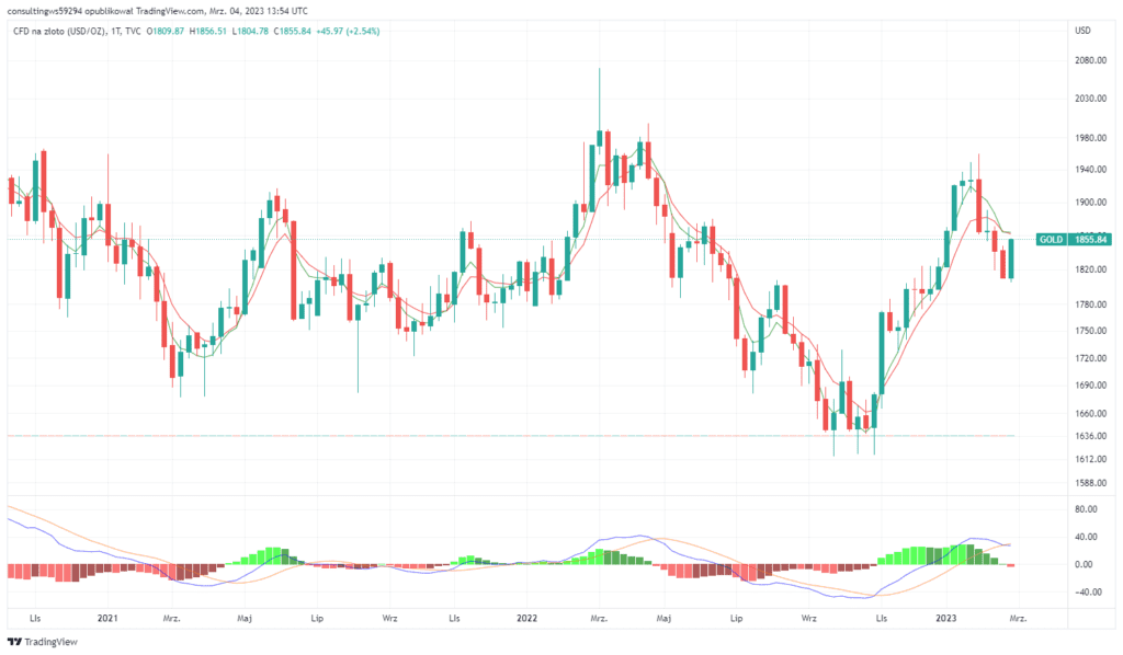 Po przetestowaniu minimów na poziomie 1810 USD za uncję, złoto wróciło do średniego przedziału 1800 USD. W chwili pisania tego tekstu kwietniowe kontrakty futures na złoto Comex kosztowały 1852,70 USD za uncję, co oznacza wzrost o 35 USD w ciągu tygodnia.
