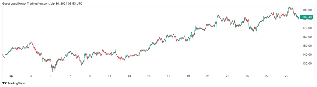 W ciągu ostatniego miesiąca wartość Solany wzrosła o ponad 30%.
