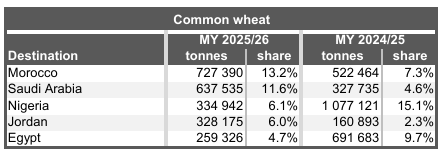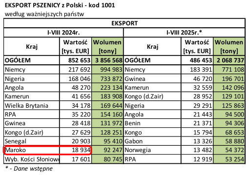 Rozmowy te są ważne w kontekście naszych problemów z eksportem pszenicy. Warto zwrócić uwagę, iż Maroko jest w tym sezonie największym odbiorcą unijnej pszenicy, ale przynajmniej od stycznia do sierpnia tego roku kraj ten nie kupował pszenicy od nas – patrz tabela niżej.