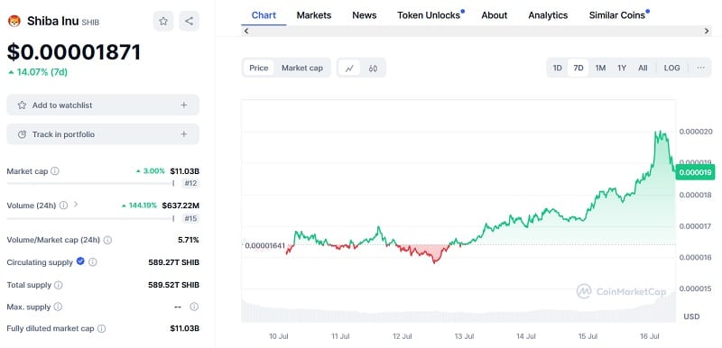 Dyskusję na ten temat wywołał tweet szefa marketingu Shiba Inu, Lucie. W ten sposób zasygnalizowano znaczący rozwój monety opartej na memach. Wydaje się, iż zapoczątkowanie tej dyskusji miało wpływ na wzrost zainteresowania tokenem. Tylko w ciągu ostatnich 24 godzin wolumen obrotu na tym tokenie urósł o ponad 140 proc. Dlatego łączna kapitalizacja przekracza już 11 mld USD. Naturalnie przełożyło się to na trend wzrostowy monety w ostatnich dniach.