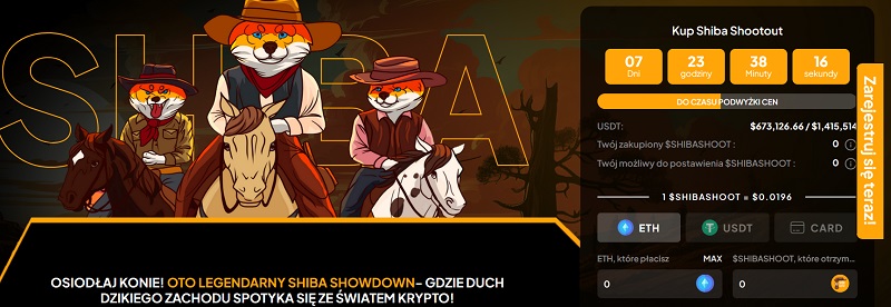 Shiba Shootout to również projekt memowy, który jest inspirowany motywem Dzikiego Zachodu. Celem twórców, którymi są Jamie Hulley, Peter Kirkman oraz James Fennell, jest dołączenie do najlepszych tokenów memowych. Czas pokaże, czy będzie mieć to miejsce, natomiast na pewno jest to projekt z silnym potencjałem do wzrostu. Wynika to przydatnych funkcji sprzyjających budowaniu zaangażowania społeczności i czerpaniu dochodu pasywnego.