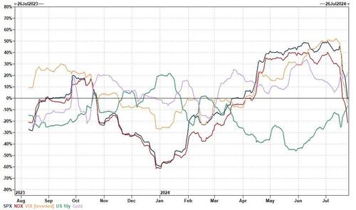 To spowodowało, iż na rynku walutowym doszło do dalszego, szerszego wypłukiwania pozycji w USD, które przełożyło się na inne waluty (w szczególności waluty finansujące, takie jak CHF, wykres 1). Jednocześnie po danych CPI widzieliśmy odwrót od akcji popularnych amerykańskich spółek technologicznych do spółek o mniejszej kapitalizacji, co doprowadziło do szerszego ogólnego zmniejszenia ryzyka na amerykańskich akcjach. Nasdaq 100 stracił blisko 10% w stosunku do szczytów z ostatnich dwóch tygodni wg. danych Bloomberga.