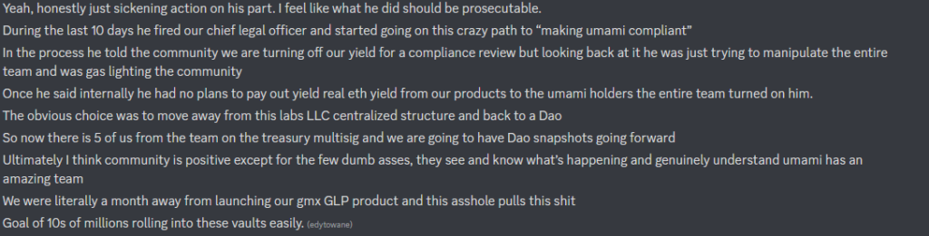 Fuck the CEO of @UmamiFinance #SCAM #FUD #FUCK pic.twitter.com/EfbIJYq5f6