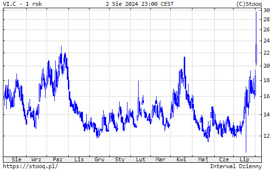 Indeks zmienności VIX, źródło: Stooq.plNie tylko globalna gospodarka, zaznacza Chen, ale także i działania dużych instytucji finansowych mają wpływ na obecne nastroje rynkowe. CEO Bitget przytacza przykład legendarnej firmy inwestycyjnej Berkshire Hathaway, która w ostatnich dniach sprzedała akcje Apple i Bank of America, zwiększając zarazem swoje rezerwy gotówkowe. „Warren Buffett sprzedaje akcje i w tej chwili posiada duże ilości gotówki, co dodatkowo wpływa na ogólne nastroje na rynku,” zauważa Chen.