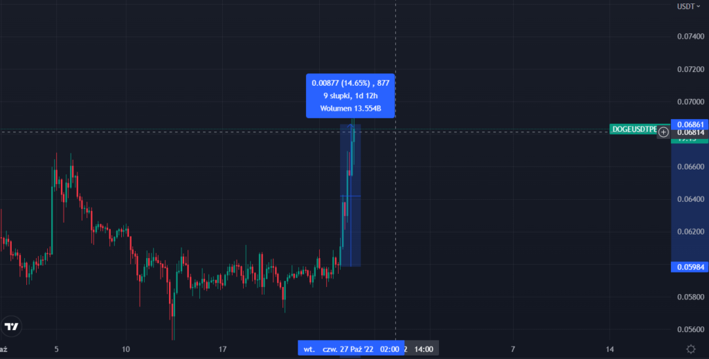 Rynek kryptowalut w końcu zanotował większą zmienność w stosunku do klasycznej „nudy”, która działa się na przestrzeni ostatnich tygodni. Wiele aktywów notuje dwucyfrowe zyski, w tym ulubiony token Elona Muska – Dogecoin (DOGE).