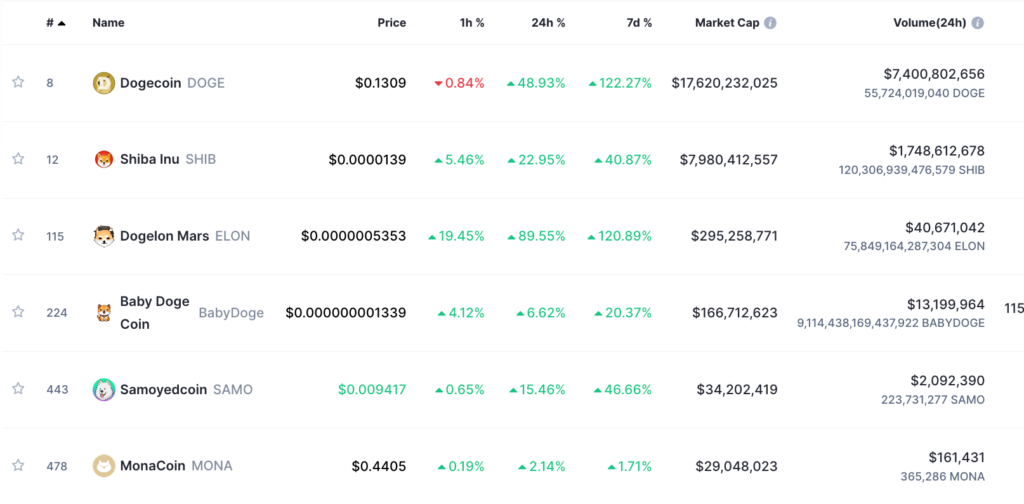 Ponadto w tym okresie znacznie wzrosły inne podobne tokeny, w tym Dogelon Mars (ELON), który zyskał 140%.