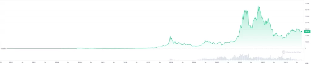 Cena Bitcoina, źródło: CMCA gdzie będziemy za kolejne 15 lat? Jak wspominać będziemy, chociażby, pandemię COVID-19?