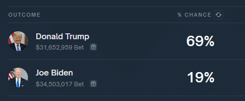 Po nieudanym zamachu na b. prezydenta Donalda Trumpa podczas wiecu wyborczego w stanie Pensylwania jego popularność w sondażach zaczęła wyraźnie rosnąć. Platformy służące do zakładów przy użyciu kryptowalut jak Polymarket szacują obecnie, iż Trump ma ok. 70% szans na reelekcję (po pierwszy zwycięstwie w 2016 r. i przegranej cztery lata później) w wyborach prezydenckich w USA w 2024 roku, co oznacza wzrost o 10 punktów procentowych w ciągu zaledwie 24 godzin. Wystrzeliły też kryptowaluty memowe wzorowane na jego postaci.