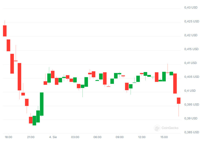 Wykres kursu kryptowaluty HBAR, para HBAR/USD, interwał 24-godzinny, źródło: CoingeckoPrzyjrzyjmy się jeszcze pozostałym interwałom czasowym: