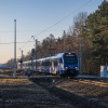 04.04.2025 Flirt 3 PKP Intercity - ED160-010 z pociągiem IC Skarbek relacji: Racibórz - Olsztyn Główny, wjeżdża do stacji Poraj od strony Myszkowa, jadąc w stronę Częstochowy