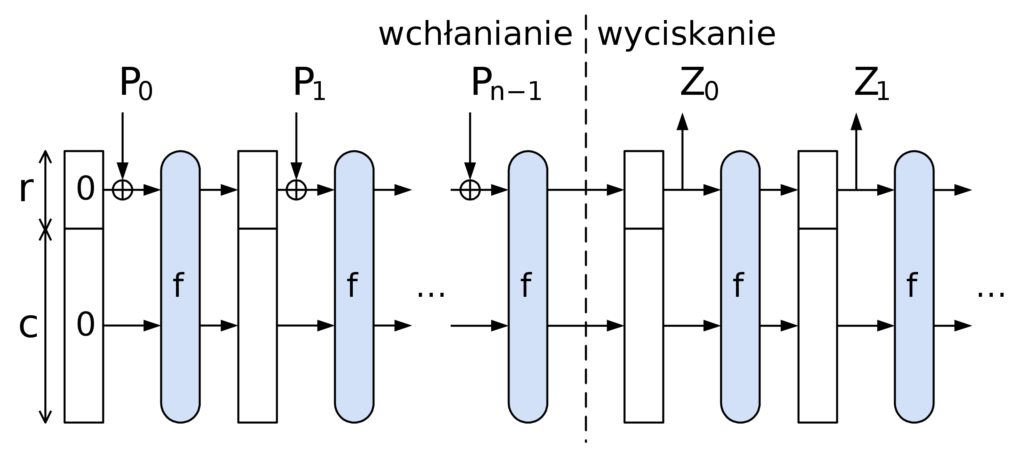 Architektura „gąbki” w algorytmie Keccak – źródło obrazka – Wikipedia