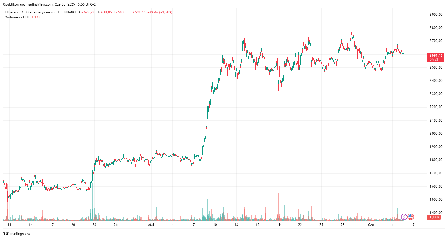 Maj okazał się być najlepszym miesiącem dla Ethereum w tym roku. Początek 2025 był dla ETH tragiczny, ale mocne odbicie tej kryptowaluty na jej wykresie cenowym sprawiło, iż narracja dot. tego ekosystemu i popyt na zawarte w nim rozwiązania dynamicznie uległy zmianie.