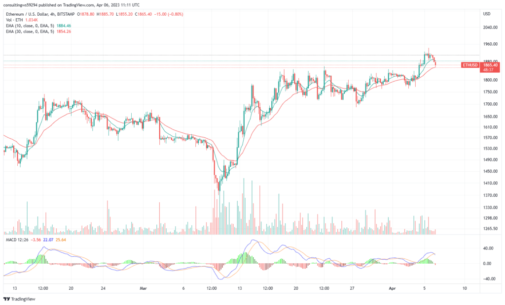Podczas gdy Bitcoin utknął w konsolidacji, Ethereum osiągnął dzienny szczyt 1940 USD, najwyższą cenę od sierpnia. Wzrost został przypisany gwałtownie zbliżającemu się hard forkowi Szanghaj, który ma się odbyć 12 kwietnia. Umożliwi on obstawianie wypłat z sieci Beacon po raz pierwszy od jej uruchomienia w grudniu 2020 r.