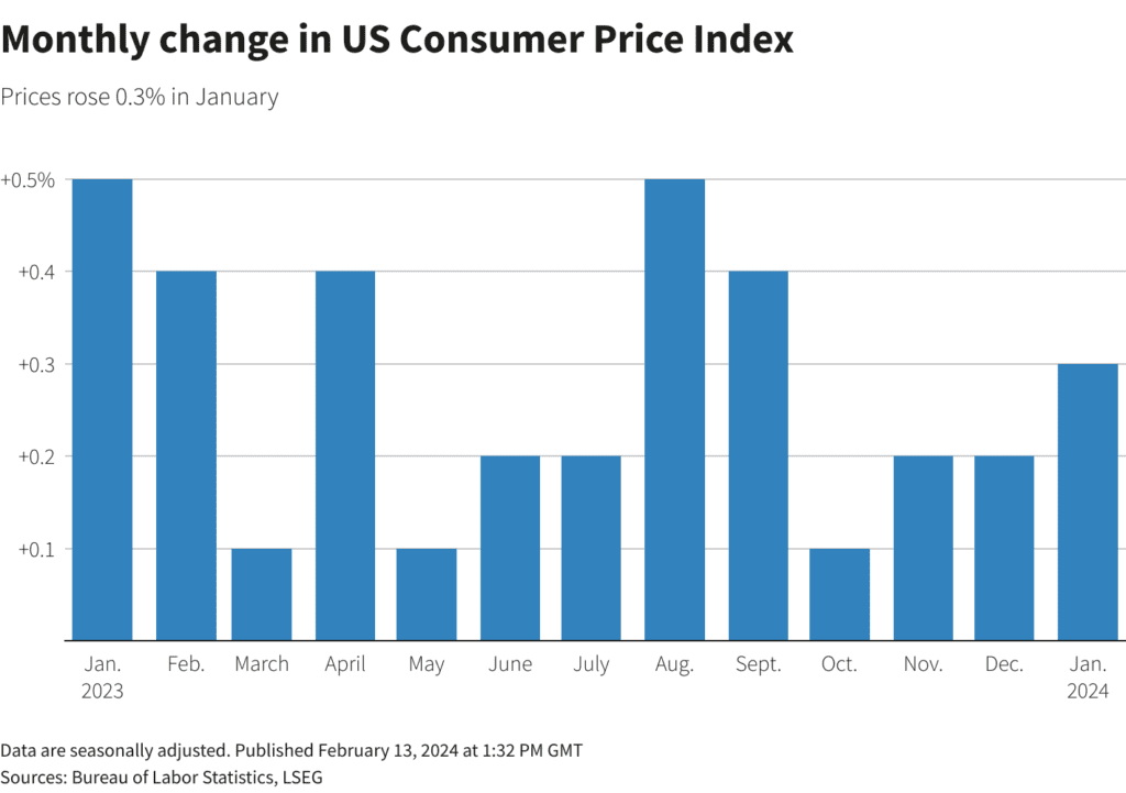 Styczniowe dane dotyczące wskaźnika inflacji ukazały jednak nie jej spadek, a wzrost. Wartość ta zwiększyła się o 0,3%, oddalając się od przyjętego celu inflacyjnego FED na poziomie 2%.