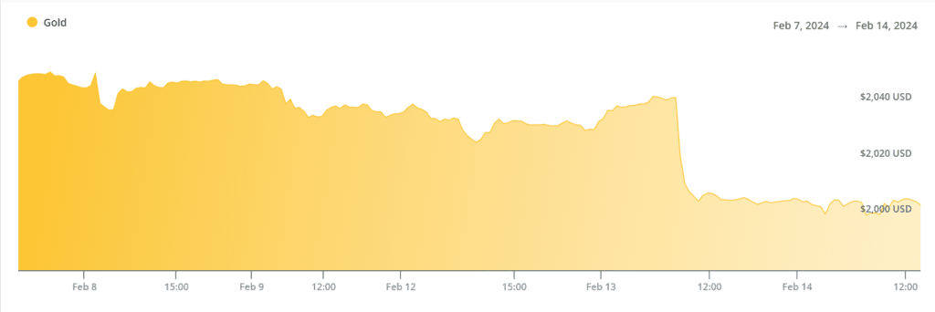 Złoto we środę osiągnęło minimalną cenę na przestrzeni ostatnich dwóch miesięcy, spadając poniżej bariery (przede wszystkim psychologicznej) 2000 tys. dolarów za uncję.