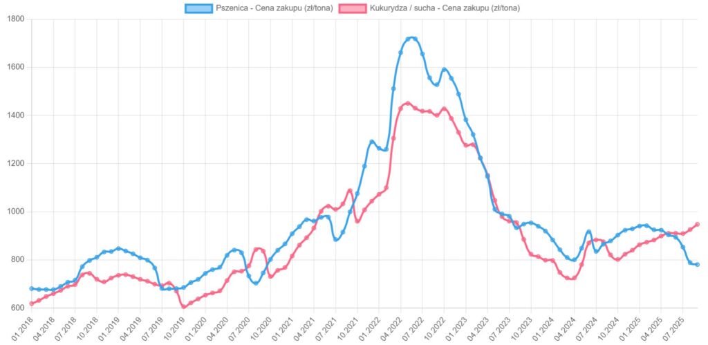 Dla porównania, ceny średnie miesięczne pszenicy i kukurydzy w kraju od 2018 roku