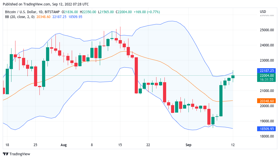 Na znak nadchodzącej zmienności, inny trader Cheds zauważył, iż Bitcoin oznaczył swoje górne wstęgi Bollingera w dziennych ramach czasowych, które teraz powoli się rozprzestrzeniają, aby zrobić miejsce dla szerszego zakresu handlowego.