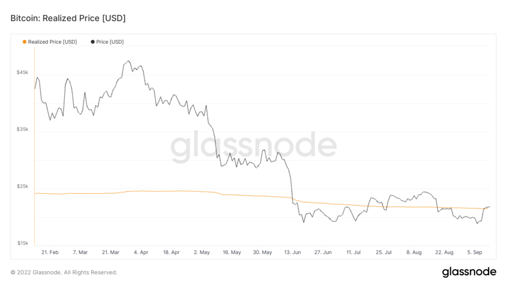 W chwili pisania tego tekstu poziom ten tworzy strefę konsolidacji, zbiegającą się z istotną linią trendu w postaci zrealizowanej ceny Bitcoina. Według firmy analitycznej Glassnode, która w tej chwili wynosi około 21 770 USD.