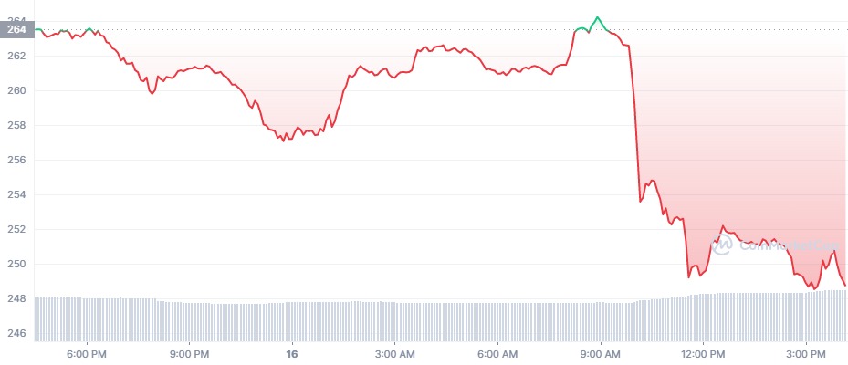 Negatywnie na całe zajście zareagował kurs natywnego tokena Binance’a – BNB – który zanotował przeszło 5% spadek tylko w ciągu kilku godzin.