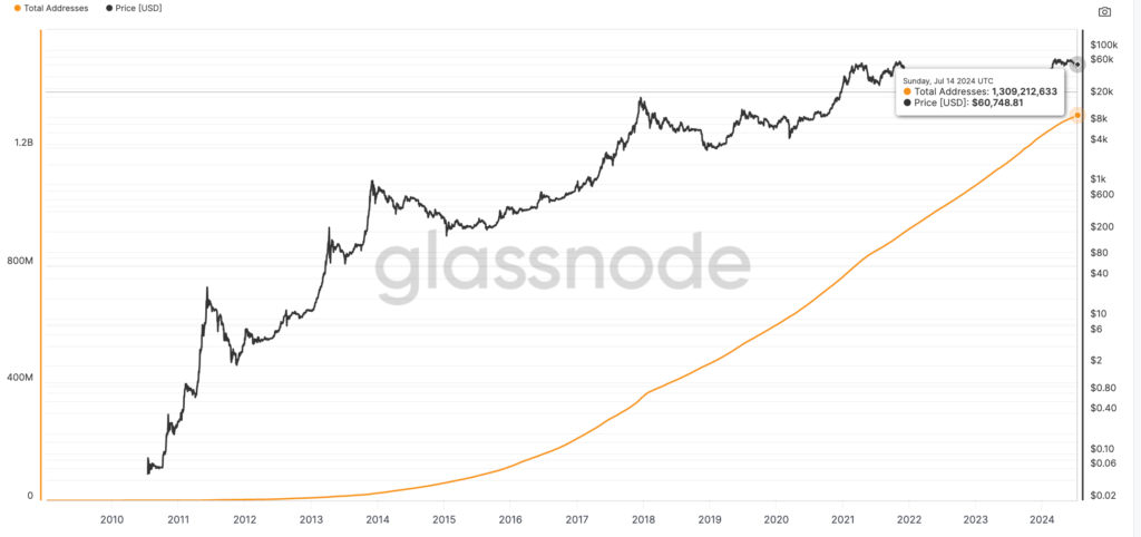 Liczba portfeli Bitcoin nieustannie rośnie. Od początku roku wzrosła ona o 5,5%, co daje około 1.3 miliona portfeli na dzień 14 lipca. Wszystko to według danych zebranych przez Glassnode. Choć wiele z tych adresów jest nieaktywnych lub pustych, liczba aktywnych portfeli z dodatnim saldem wynosi około 44 miliony.