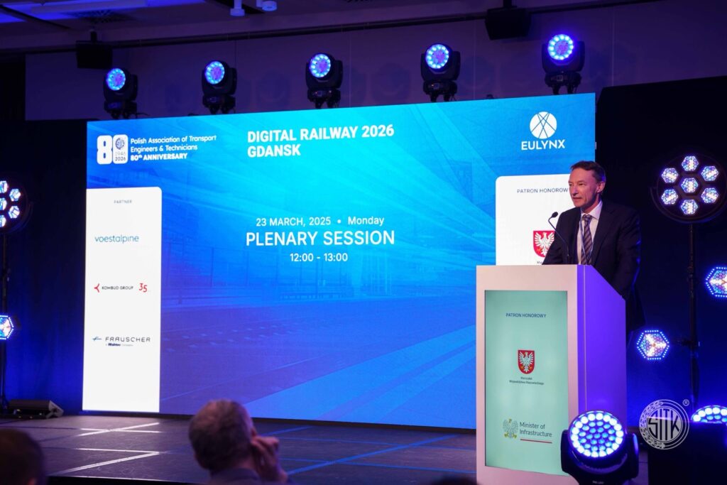Sesję plenarną dopełniło wystąpienie poświęcone przyszłości polskiej infrastruktury. Kierunki cyfrowej transformacji omówił dr inż. Maciej Kaczorek, członek zarządu Polskich Linii Kolejowych (PLK) – od systemu ERTMS przez standard EULYNX aż po technologie BIM.