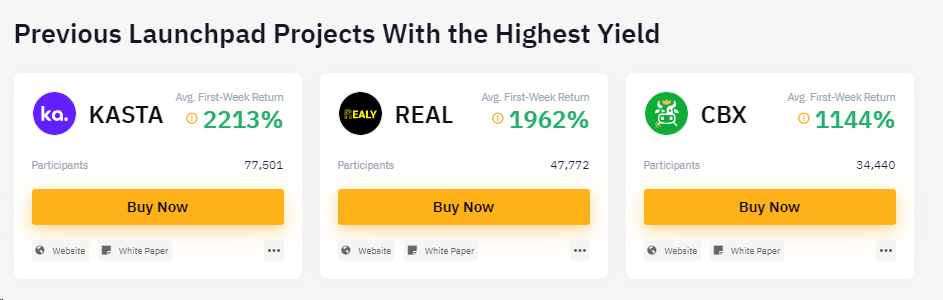 - Launchpool – tutaj możemy inwestować w nowe projekty na wczesnym etapie. Sytuacja jest win-win. Projekt pozyskuje kapitał, a my możemy zarobić na wzroście po listingu.