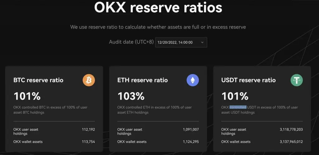 Druga (po Binance) giełda kryptograficzna na świecie pod względem wolumenu obrotu, OKX opublikowała na swojej stronie internetowej drugi dowód rezerw (Proof of Reserves). W ramach swojego zaangażowania na rzecz przejrzystości firma będzie publikować podobny raport 22 dnia każdego miesiąca. Korzystając z systemu typu open source, użytkownicy mogą przeglądać niezależnie i weryfikować wyniki audytu na stronie giełdy. Mogą także oni uzyskać dostęp do wskaźników rezerw OKX (ostatnich i historycznych). Dodana funkcjonalność umożliwia im pobieranie plików z najnowszymi danymi podczas samodzielnej weryfikacji zasobów w łańcuchu bloków. Na ten moment pulpit nawigacyjny OKX Nansen pokazuje, iż ponad 90% zasobów platformy składa się z kryptowalut takich jak Bitcoin i reprezentant ekosystemu Ethereum, a także tokena (stablecoina) USDT. Wszystkie 3 assety są pokryte w ponad 100%.