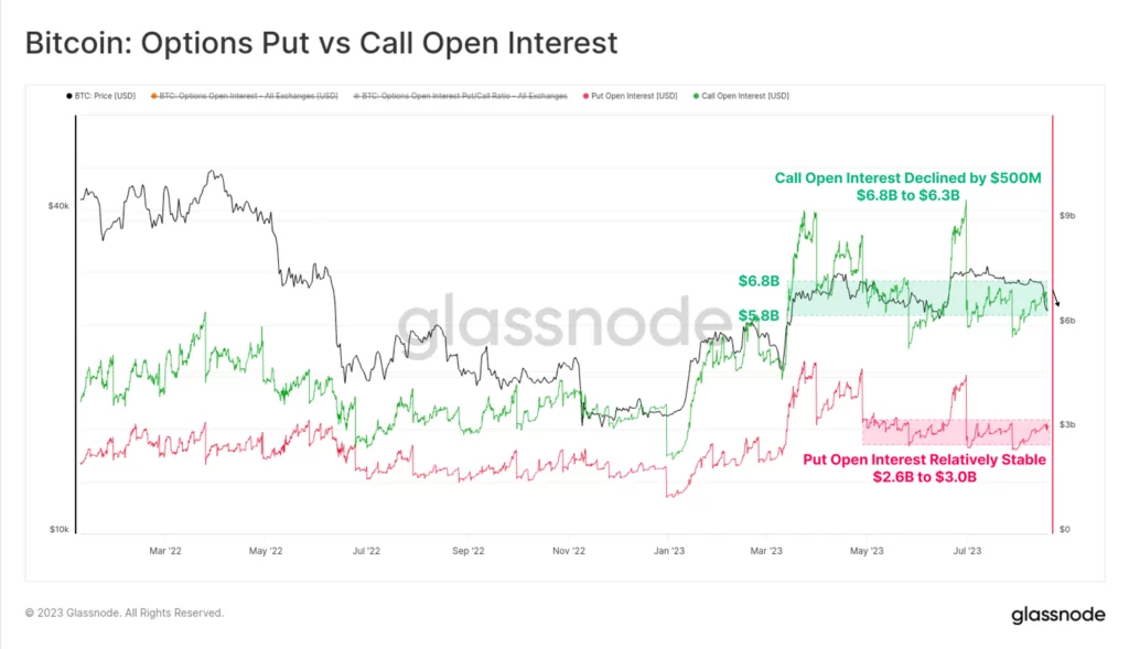 Źródło: GlassnodeOpen interest (wartość otwartych kontraktow na rynku opcji) zarówno dla opcji kupna, jak i sprzedaży pozostał zaskakująco stabilny. Sugeruje to, iż podczas gdy zmienność była prawdopodobnie błędnie wyceniona, na rynkach opcji nie doszło do wymuszonego delewarowania. Rynek opcji Bitcoina jest w tej chwili zbliżony rozmiarem do rynków futures co wzmacnia jego znaczenie od strony analitycznej.
