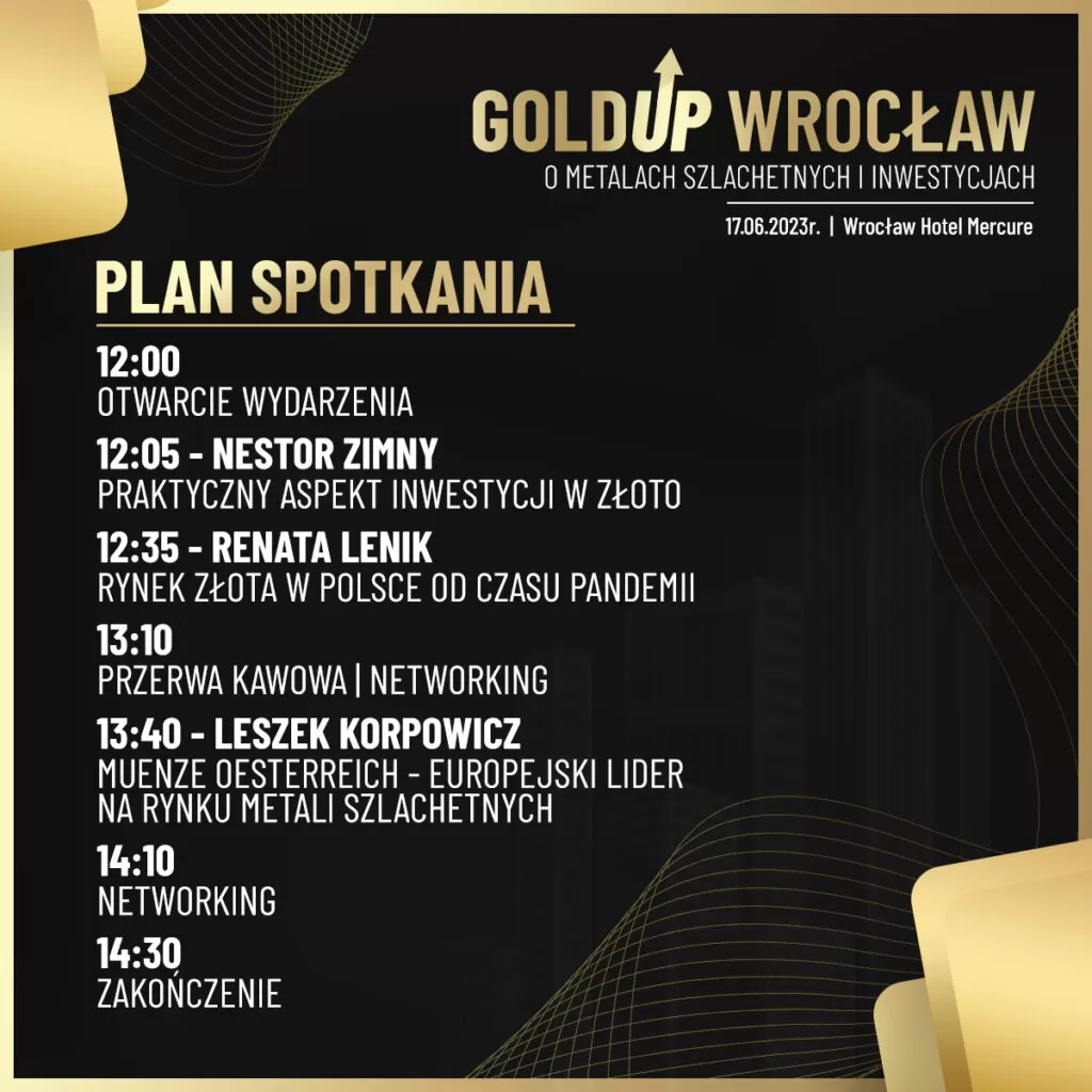 Organizatorzy wydarzenia przygotowali dla miłośników metali szlachetnych serię prelekcji, Q&A, networking i nie tylko. Na miejscu uczestnicy będą mieli niecodzienną możliwość do skorzystania ze specjalistycznego sprzętu, który pozwoli im na zweryfikowanie autentyczności swoich złotych i srebrnych monet, sztabek i innych przedmiotów. Podczas eventu odbędzie się, również konkurs, w którym do wygrania będą złote nagrody. A oto pełny plan spotkania: