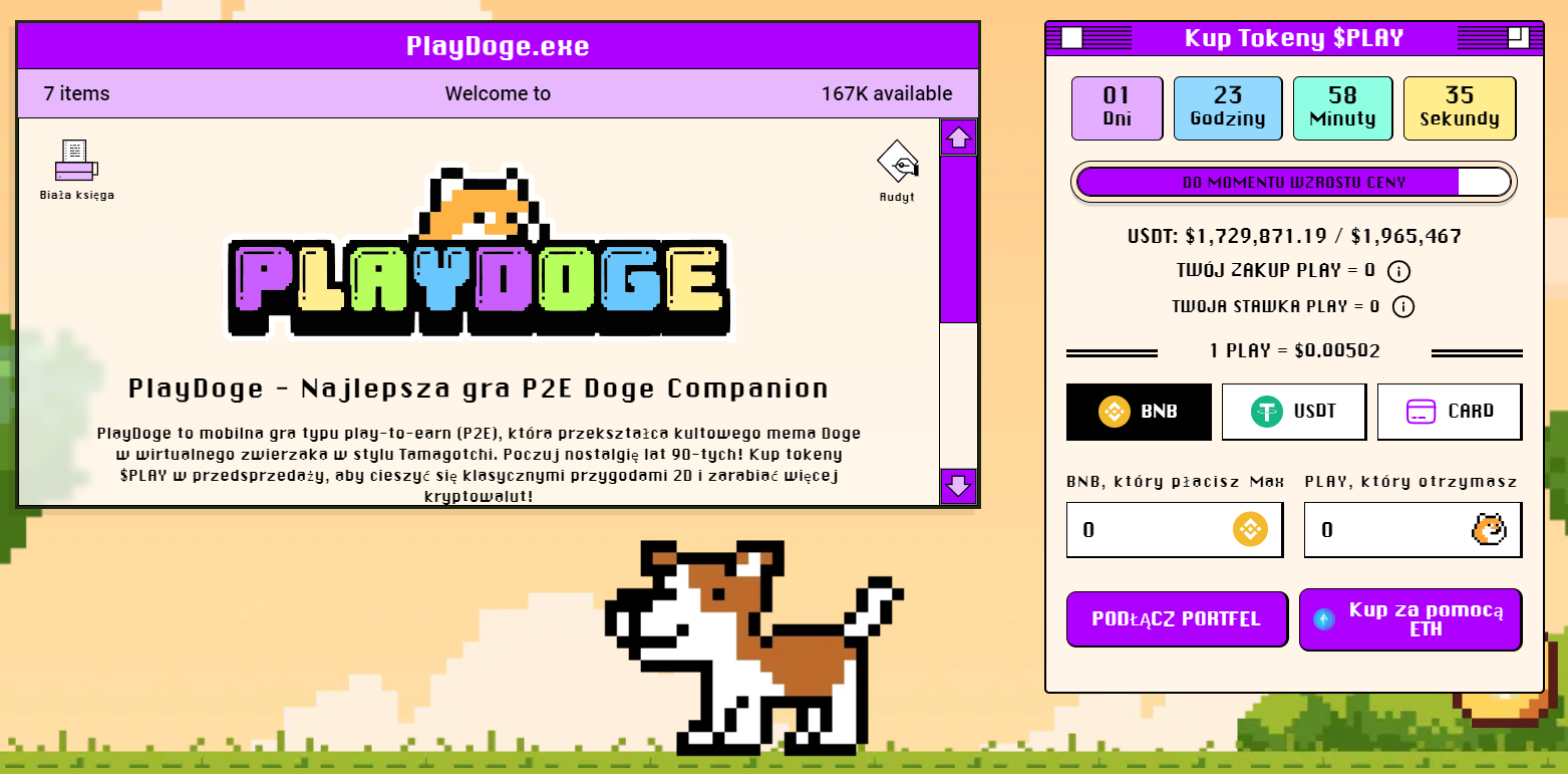 Jeśli gracz jest zwolennikiem popularnych tokenów Doge, tym lepiej, bo PlayDoge to moneta właśnie tego typu, płynąca na fali popularności Dogecoina czy Shiba Inu, w analogowym stylu. Styl gry motywuje użytkowników do codziennego zaangażowania — zgodnie z ideą gry z lat 90. zwierzak umrze, jeżeli właściciel nie będzie się nim zajmować, a tego byśmy nie chcieli.