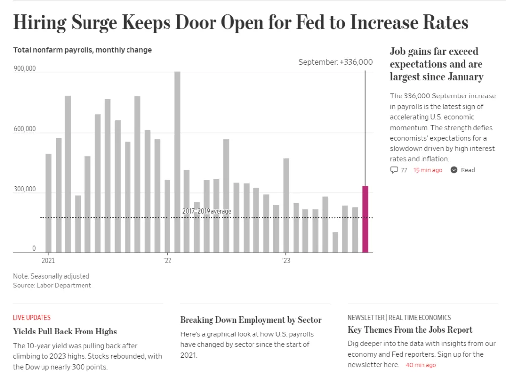 Czy wzrost zatrudnienia otworzy drzwi do kolejnych podwyżek stóp procentowych? Wrzesień pokazał rekordowy wynik w tym roku ALE warto pamiętać, iż sezonowo to wrzesień zwykle jest bardzo mocny. Źródło: WSJ