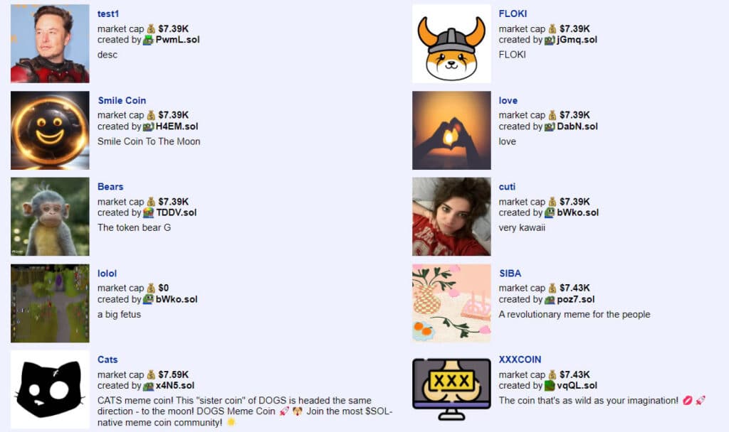 Memecoiny wygenerowane dzięki profilu (źródło: makenowmeme)Jak można było przeczytać na stronie, topowy token o nazwie „Dogs” posiadał kapitalizację rynkową w wysokości 184 000 USD. Platforma oferowała również zrzuty tokenów MNM, gdy memecoiny osiągnęły określony pułap rynkowy i kamienie milowe wolumenu.