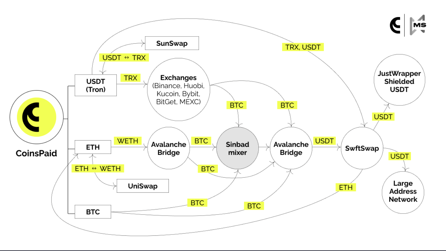 CoinsPaid oświadczył, iż współpracował z firmą zabezpieczeń blockchain Match Systems, aby śledzić skradzione fundusze. Większość z nich została przetransferowana na SwftSwap. Według firmy, wiele aspektów transakcji hakerów przypominało działania Lazarus Group. Takie jak w przypadku ataku na portfel Atomic Wallet, gdzie skradziono 35 milionów dolarów.