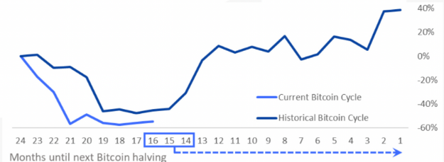 Zbliżamy się do kluczowej strefy wynoszącej od 14 do 16 miesięcy przed halvingiem, w tym czasie historycznie Bitcoin zmierzał na północ o choćby 40%. Źródło: MatrixportSzef badań i strategii w firmie dostarczającej usługi kryptowalutowe i zarządzającej blisko 10 mld USD Matrixport, Markus Thielen spodziewa się 63 000 USD ceny Bitcoina jeszcze przed halvingiem w 2024 roku! Analitycy mają świadomość, iż w historii Bitcoin rósł przed zaprogramowanymi w kodzie halvingami, a rynkom ciężko będzie oprzeć sie pokusie zakupu przed tak istotnym wydarzeniem. Zjawisko miało miejsce zaróno w 2016 jak i 2020 roku. jeżeli porównamy marzec 2022 i cenę Bitcoina na poziomie ok 45 000 USD oraz marzec 2024 (potencjalny halving) okaże się, iż cena może sięgnąć zakłądanych przez Thielena 63 000 USD, w poprzednich cyklach średnio w ten sposób zyskiwał 39%. Listopad może być euforyczny, ceny w przeszłości zaczynały rajd średnio na 15 miesięcy przed halvingiem. Według Matrixport to wskazuje, iż główne odbicie powinniśmy widzieć w przyszłym miesiącu.