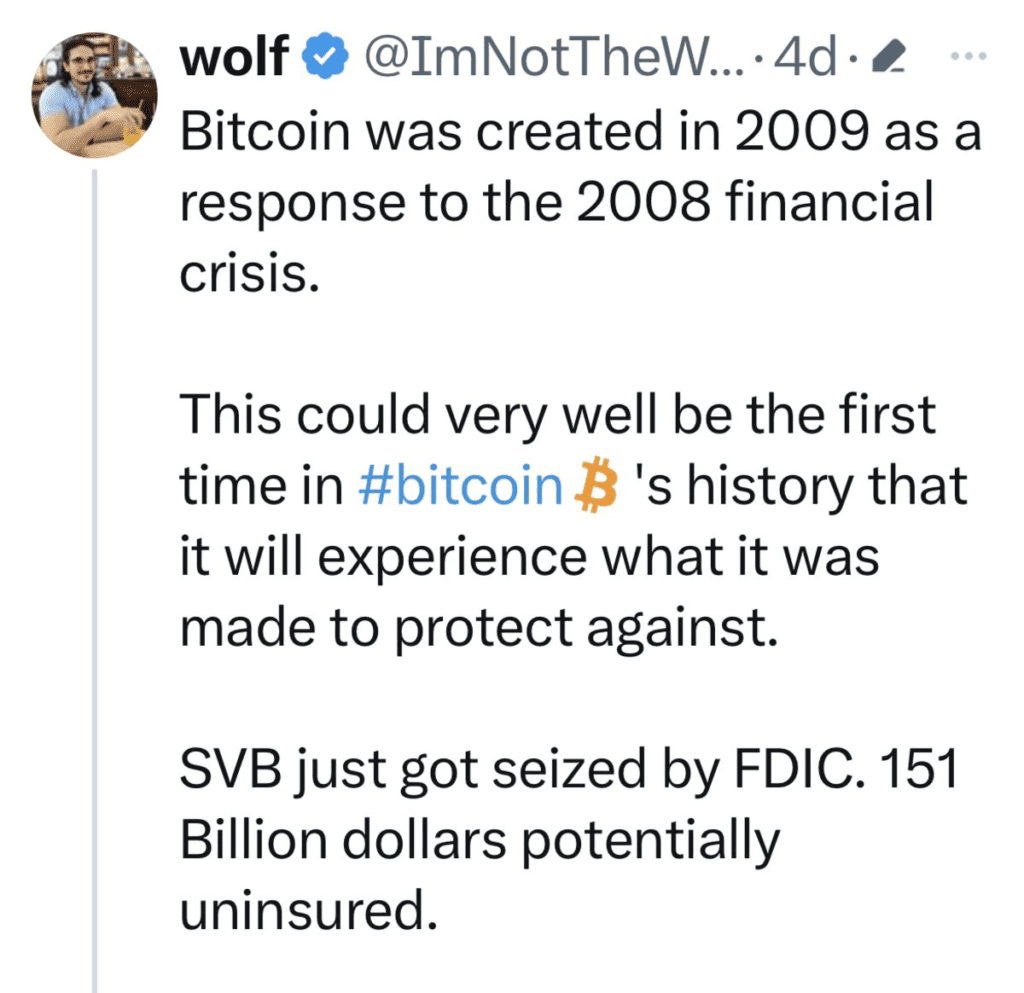 Wzrost kursu Bitcoina w obliczu narastającego kryzysu bankowego w USA jest podobny do tego, jak reagował on podczas załamań banków na Cyprze i w Grecji.