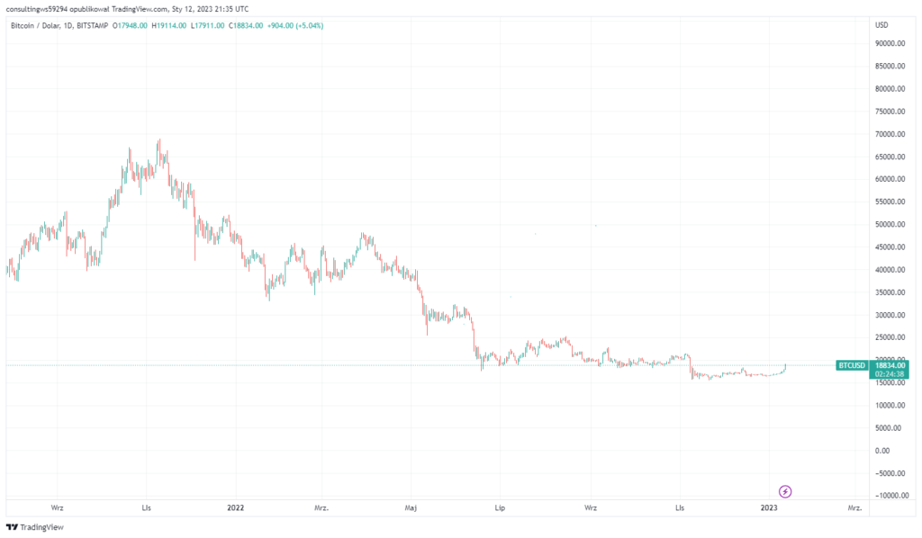 W środę i czwartek na amerykańskiej giełdzie doszło do znacznych wzrostów. Skok akcji odzwierciedla zaufanie inwestorów do podwyżek stóp procentowych Rezerwy Federalnej, która skutecznie kontroluje inflację. W tym samym czasie S&P 500 i Nasdaq Composite również odnotowały znaczące wzrosty w ciągu dnia. Dodatkowo rynek kryptowalut również pokazał silny byczy sygnał. Bitcoin (BTC), dominująca kryptowaluta na rynku, osiągnął 19 000 USD w ciągu ostatnich 24 godzin.